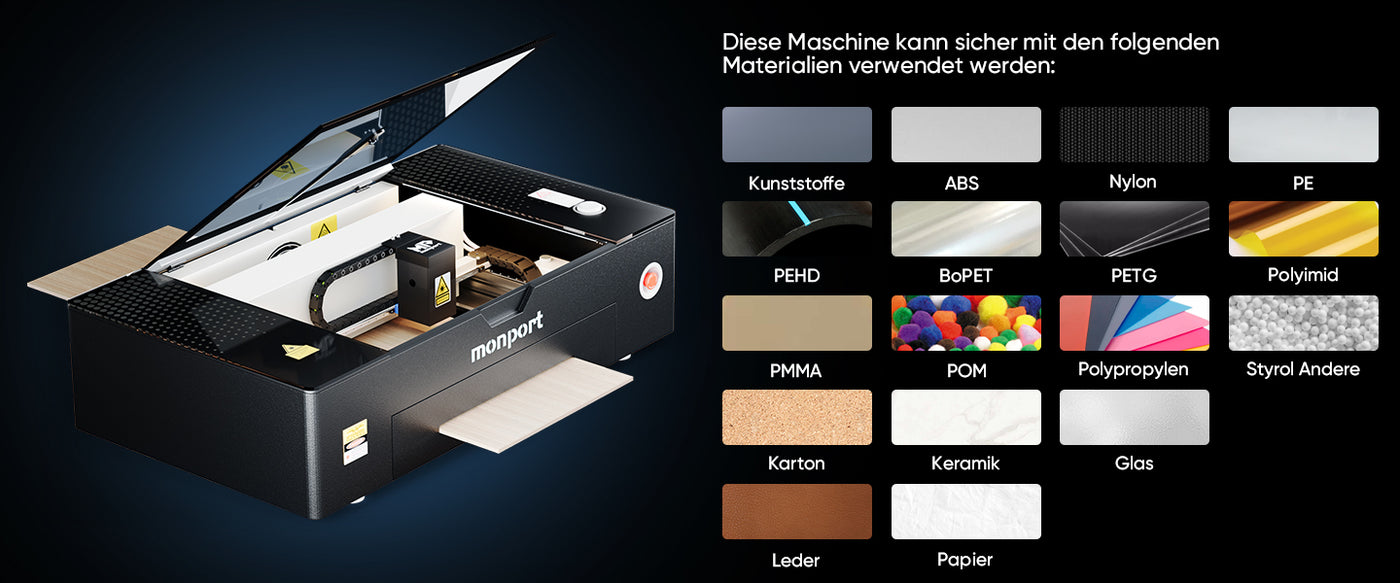 MONPORT ONYX 55W (460mm*290mm) Multifunktionale Desktop Laser Graviermaschine - Maschinen ist auf Lager und wird versandt, sobald es wieder verfügbar ist