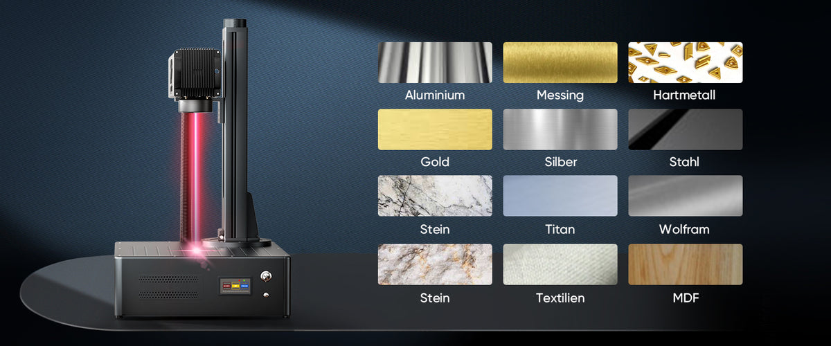 Zum Gravieren geeignete Materialien: Messing, Hartplastik, Titan, Ziegel, Marmor, Gold, Hartmetall, Silber, Wolfram, Granit, Stahl usw.