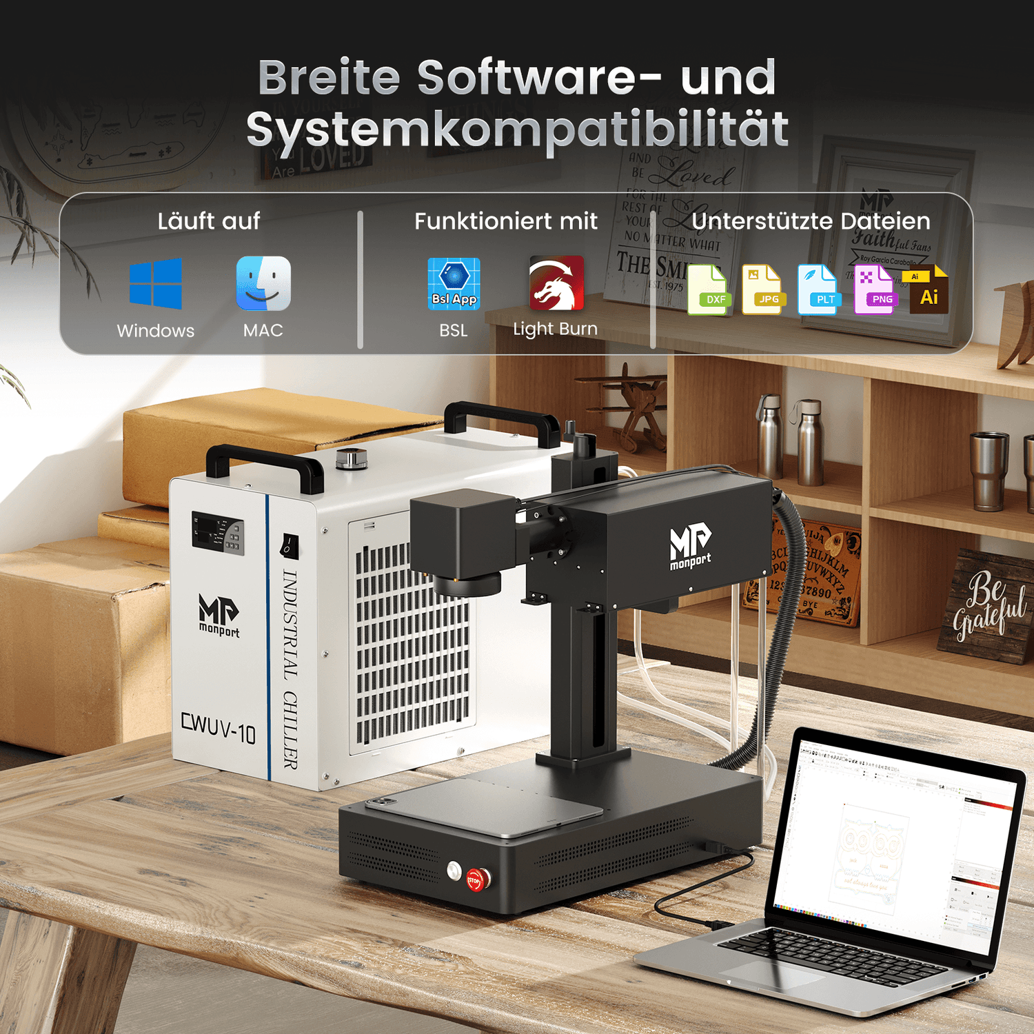Monports intelligente Temperaturregelungslösung gewährleistet die präzise Aufrechterhaltung der optimalen Betriebstemperatur des Lasers sowohl in extrem heißen als auch kalten Umgebungen und ermöglicht es dem Lasergraviermaschinen, durchgehend mit höchster Effizienz zu arbeiten.