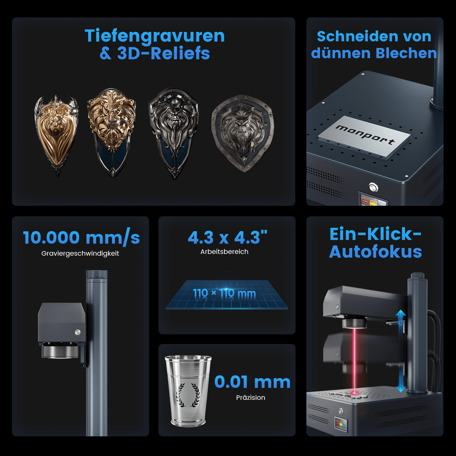 Monport GM 20W Pro Integrierte Faserlaser-Graviermaschine & Markiermaschine mit Autofokus - Maschine - Maschine ist auf Lager und wird versandt, sobald es wieder verfügbar ist