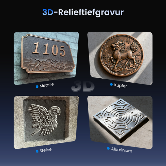 Die GT-Serie ermöglicht mit hoher Leistung präzise Tiefgravuren und detaillierte 3D-Reliefs, die außergewöhnliche Klarheit und Details zeigen. Sie ist die ideale Wahl für komplexe Designs, die Tiefe und Textur erfordern, und hebt Ihre Kreativität auf ein neues Niveau.