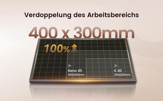 Die 400×300 mm große Arbeitsfläche ermöglicht das mühelose Gravieren großer oder mehrerer Werkstücke, steigert die Effizienz und reduziert Materialverschwendung.
