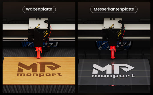 Der Wabentisch eignet sich für präzises Schneiden kleiner Teile, während der Aluminium-Arbeitstisch ideal für Acryl ist. Beide Arbeitsplatten werden kostenlos bereitgestellt.