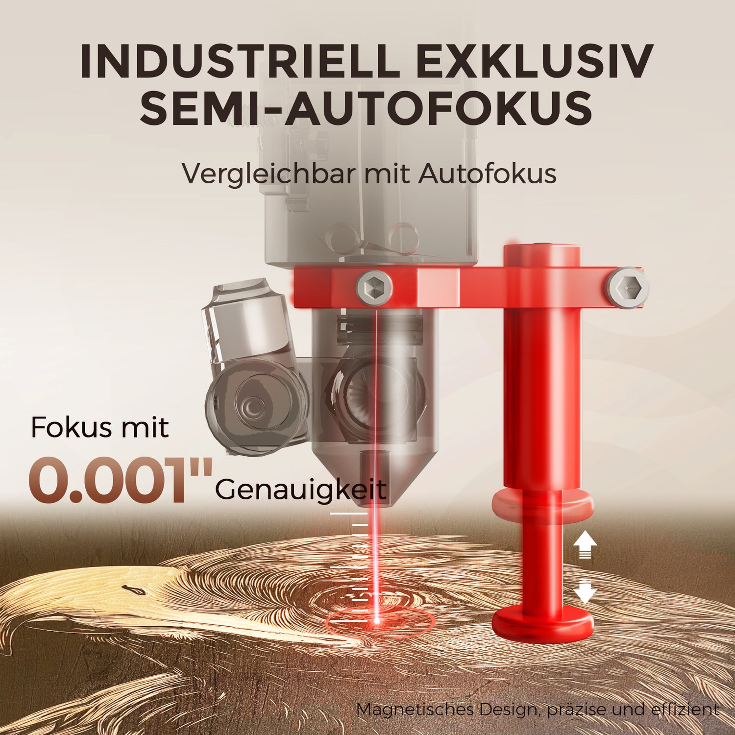 Monport hat eine innovative, effiziente und benutzerfreundliche magnetische Fokussierungsmethode entwickelt, mit der jeder – vom Anfänger bis zum Experten – den Laser in nur wenigen Sekunden präzise fokussieren kann. Es ist so einfach, dass Sie es von Anfang an lieben werden.